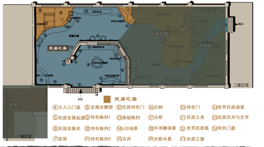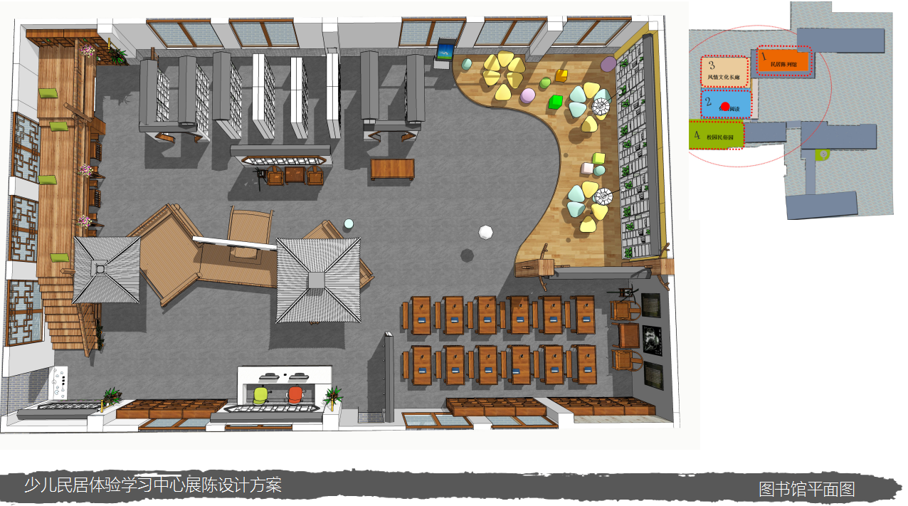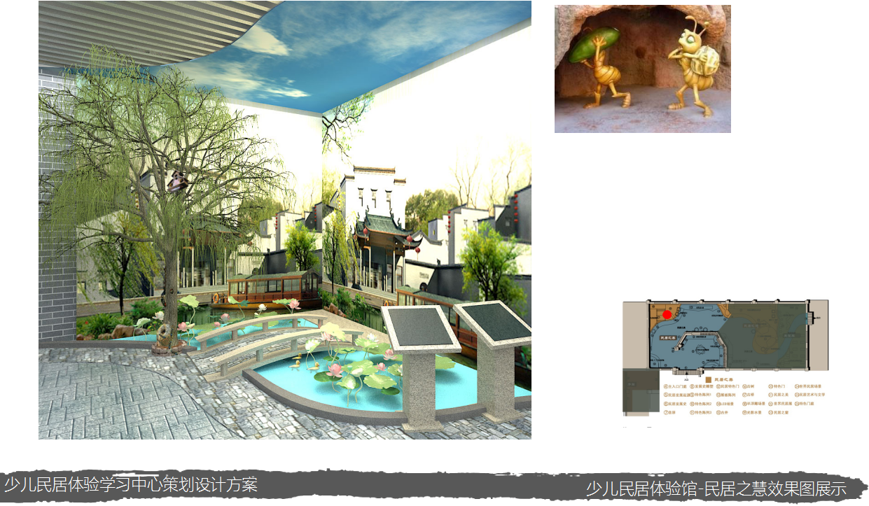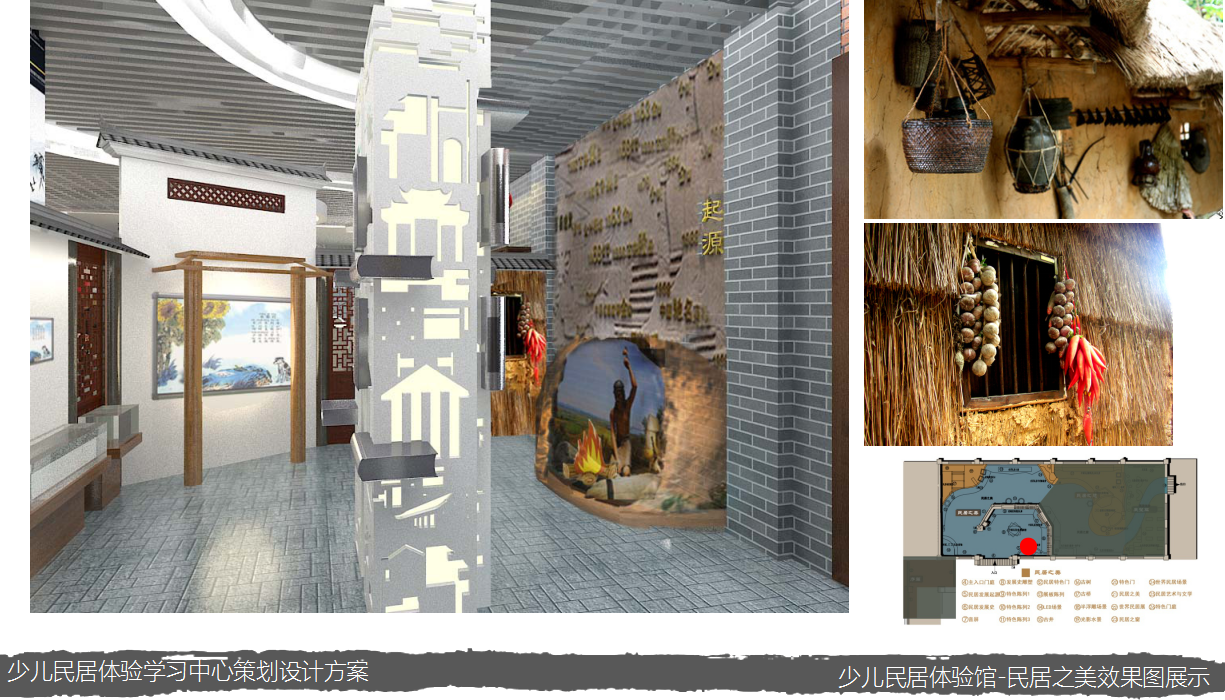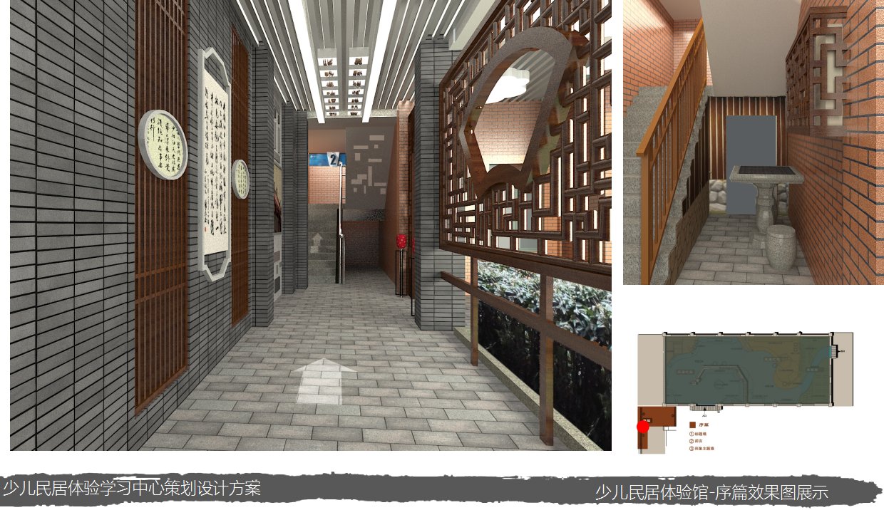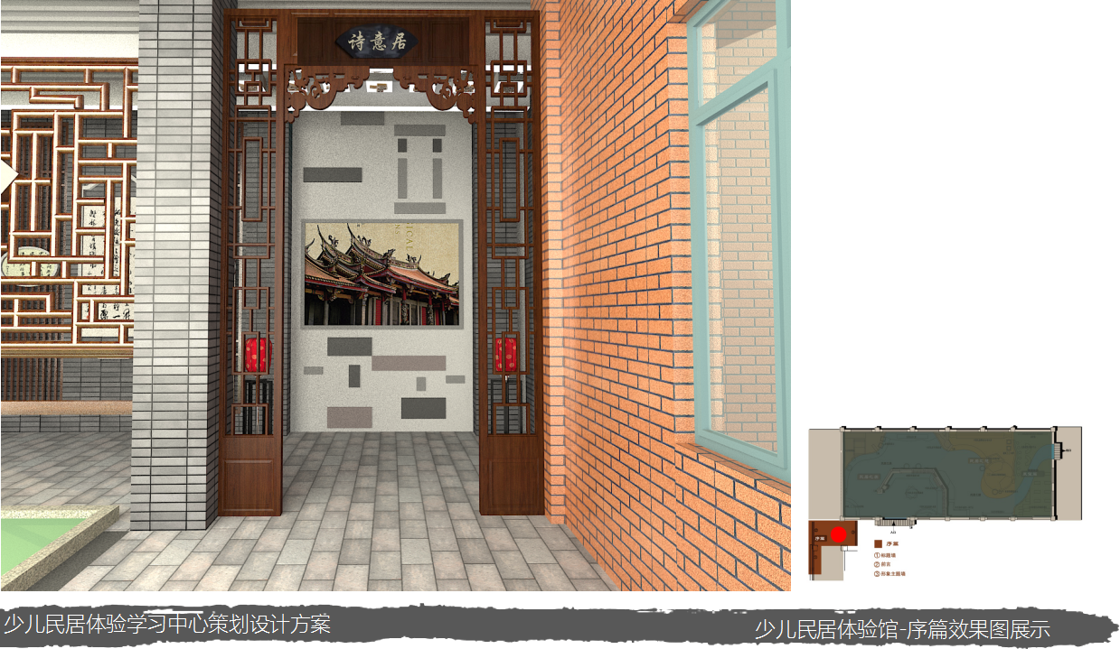 在互联网+教育的形势下,我们的展示方式采用 “传统”与“现代”相结合,在“传统图片实物陈列模式”的基础上,辅以现代科技展示手法,3D虚拟民居场景搭建, 3D360度建筑模型体验等方式;再通过“模型”、“电子沙盘”、 “多媒体视听”和“触摸式显示屏”等展示形式相结合,运用空间造型艺术、平面设计艺术、声、光、电空间色彩营造和多媒体技术等手段,打造一个诗情画意、充满乐趣的少儿民居体验中心。