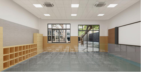 在普通教室的设计上,我们结合该校“慧学慧玩慧生活”的办学理念,在满足教学的基础需求上,增加一些墙面展示部分,以期学生拥有更多展示自己作品的机会和空间。