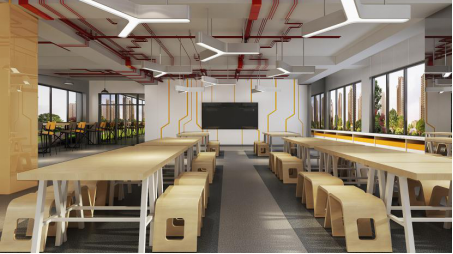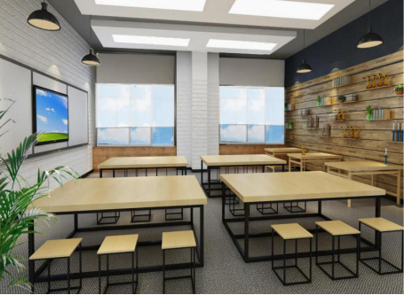 机器人制作室可分为教学区、学生创作区、作品展示区,除了满足日常授课的功能之外,选择大的操作桌方便学社广告交流,也更好的提供一个孩子门自由创作的空间。